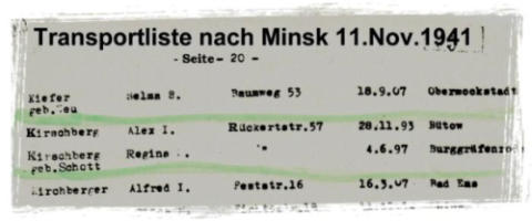Urspünglich soll der Transport vom 22. November 1941, einem Freitag, nach Riga gehen. Doch wegen Überfüllung des dortigen Ghettos wird er in