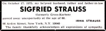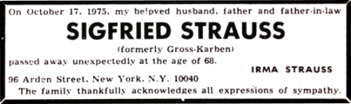 >>> am 15.4.1937 nach nach Ffm, Brückenstraße 26 verzogen, von da nach New York emigriert, dort kurz danach gestorben.