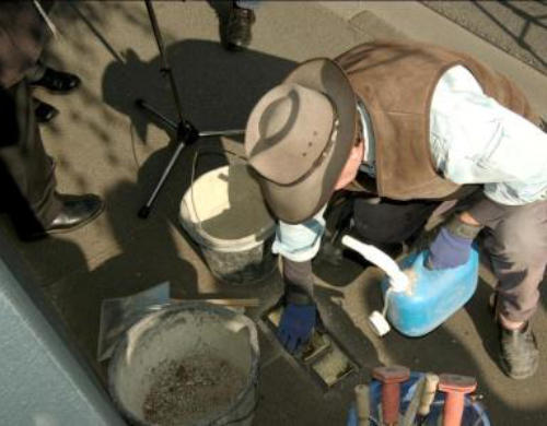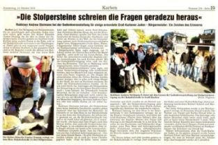 Karben (pe). Die Verlegung von Stolpersteinen, die an