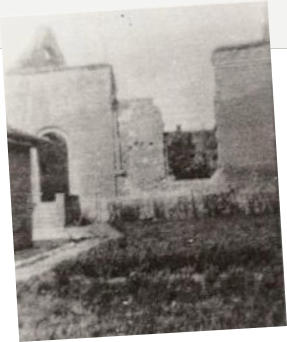 Bild 1: (Oben): Die ausgebrannte Synagoge (Foto von Edgar Braun, 1945) und Gedenkstein (verlegt 1985)