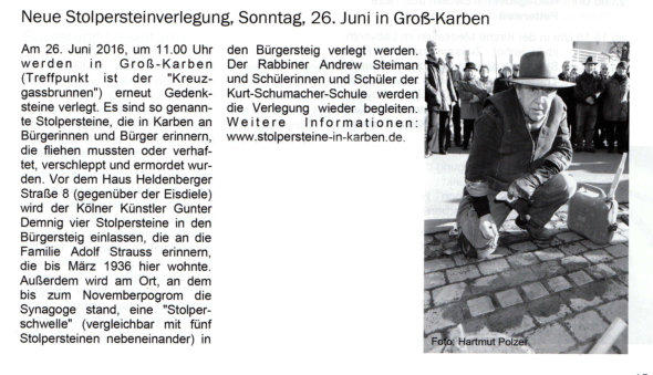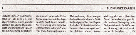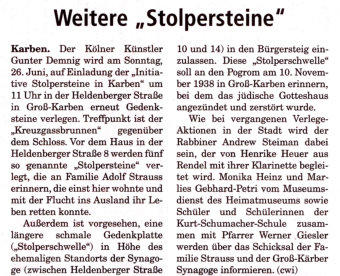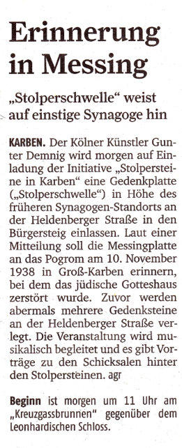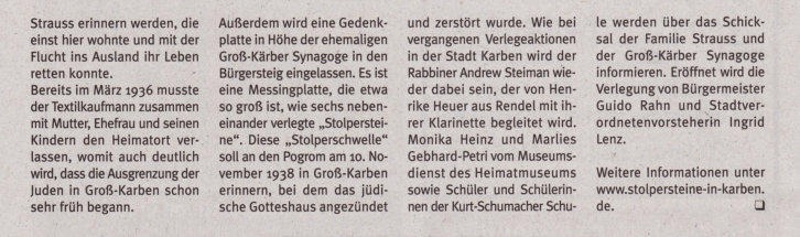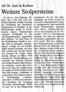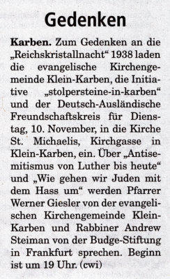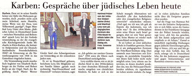Für die umfangreiche Berichterstattung bedanken wir uns bei:Blickpunkt Karben, Frankfurter Allgemeine Zeitung, Frankfurter Neue Presse, Frankfurter Rundschau, Karbener Zeitung, Rhein-Main-News, Das Stadtmagazin, Wetterauer Wochenboten, Wetterauer Wochenpost, Wetterauer Zeitung
